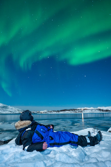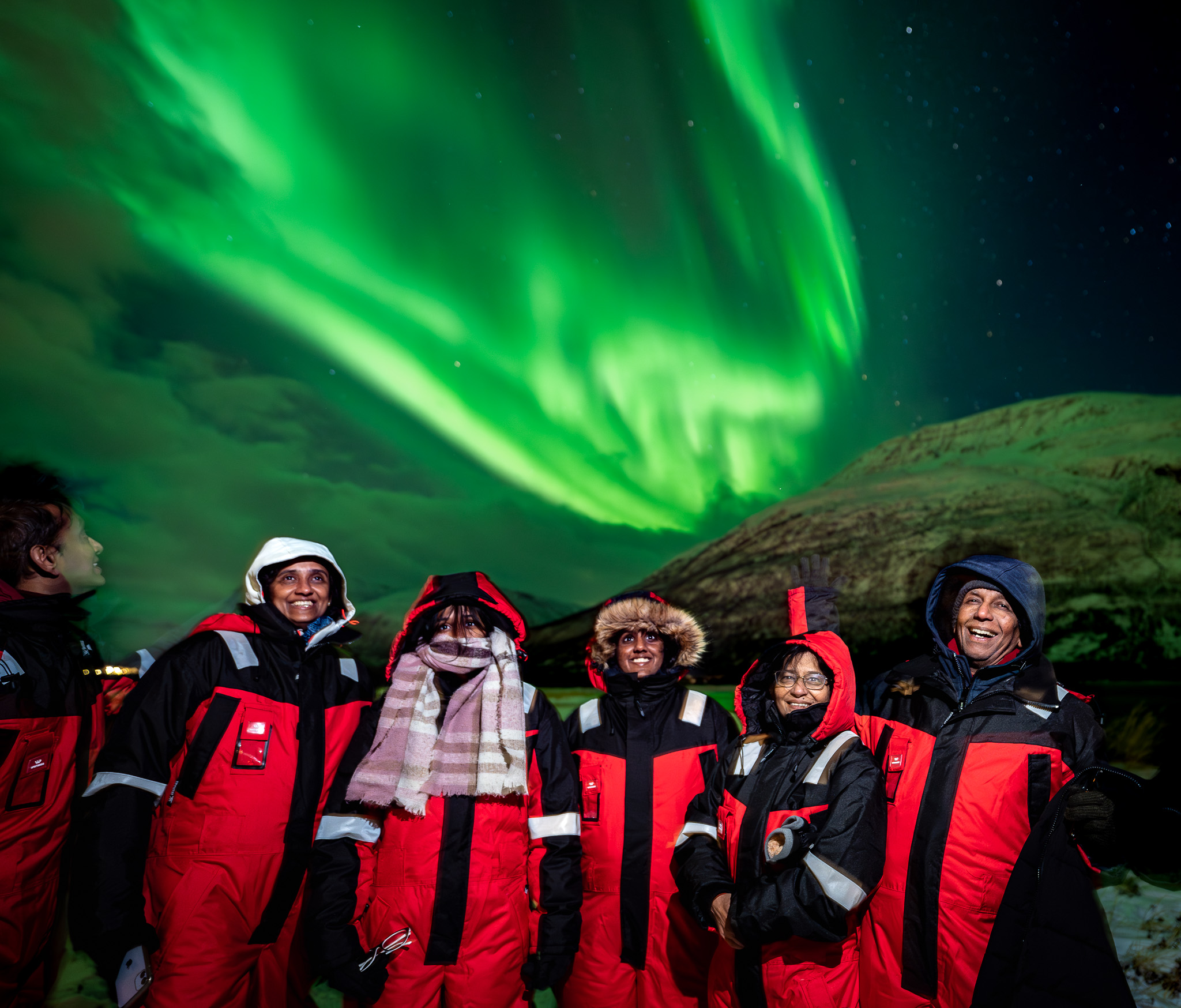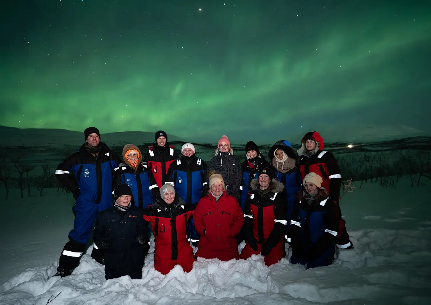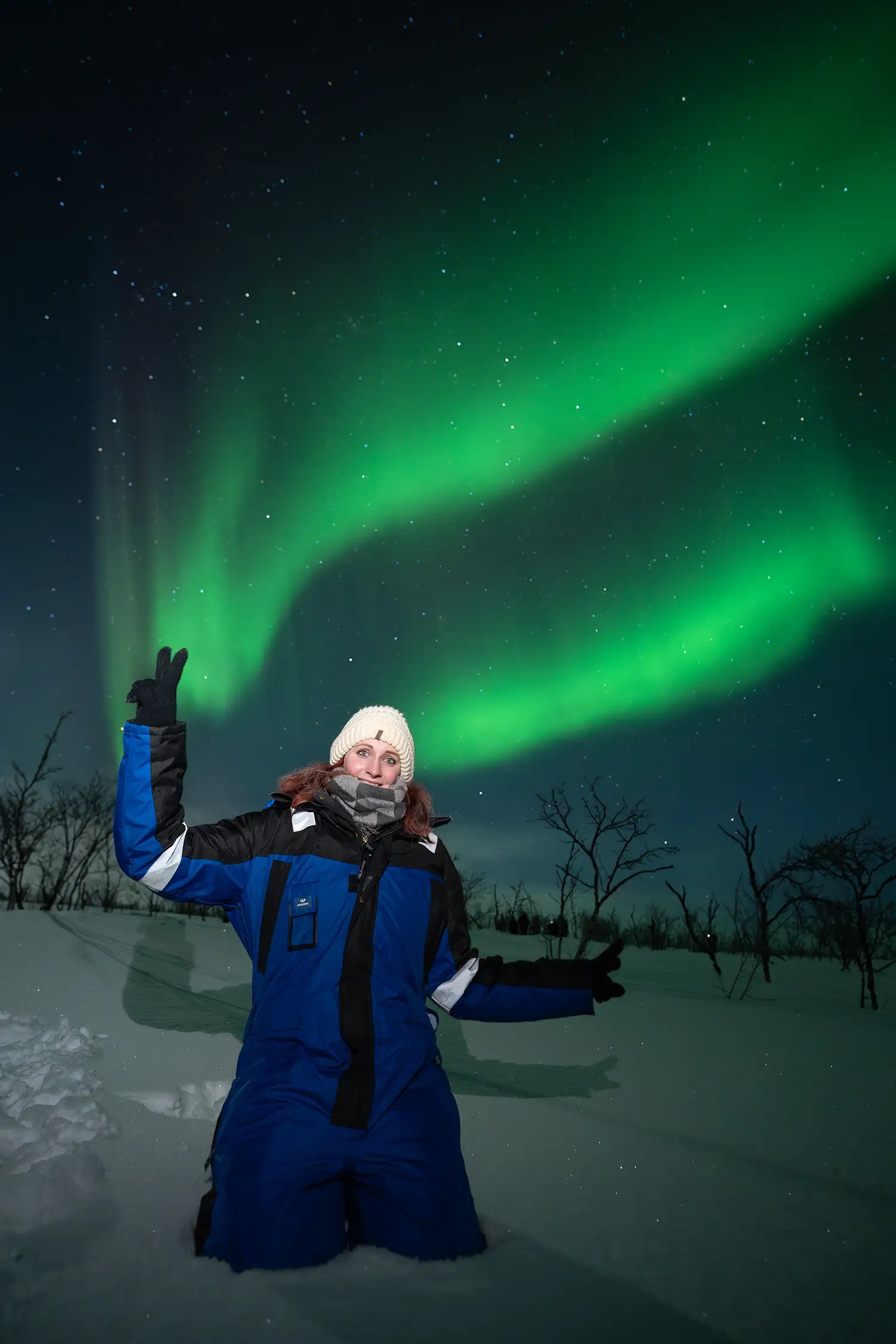 Du bekommst einen warmen Anzug, eine Portion hausgemachter Suppe und das Gefühl, willkommen zu sein. Du lachst mit deinem Guide, der auch Fotograf, Wetterfan und Lagerfeuerfreund ist, trinkst etwas Warmes und ganz plötzlich tanzt das grüne Licht über dir.