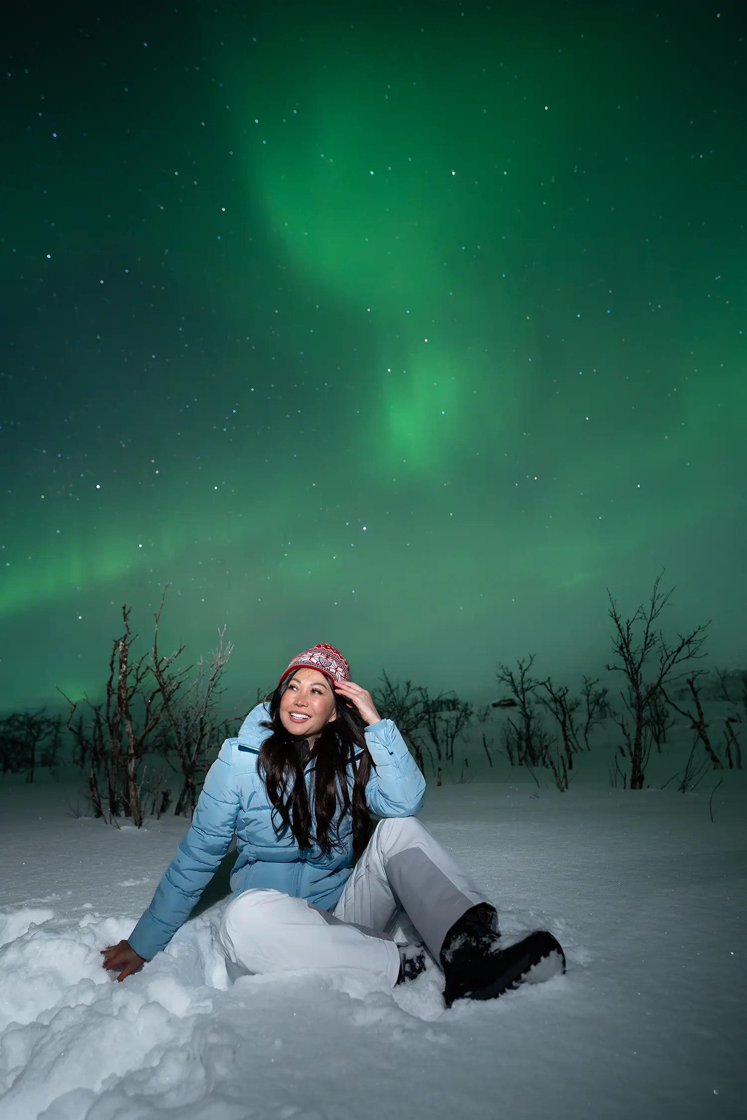 Dein Guide hält den Abend mit Porträts und Polarlichtaufnahmen fest. Danach bekommst du eine handverlesene Auswahl professionell bearbeiteter Fotos, die du ganz einfach herunterladen kannst.
